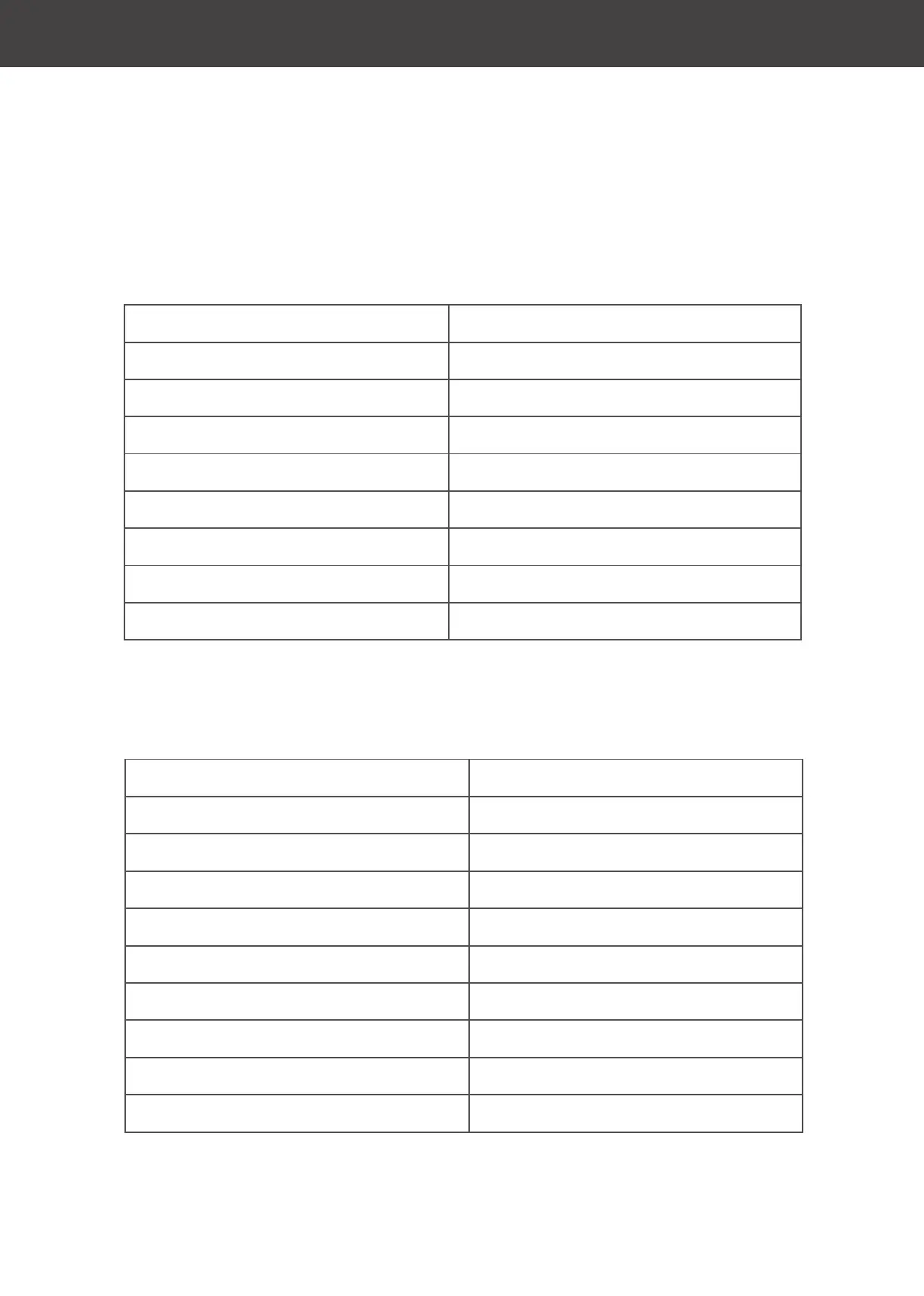 Product table and technical specifications