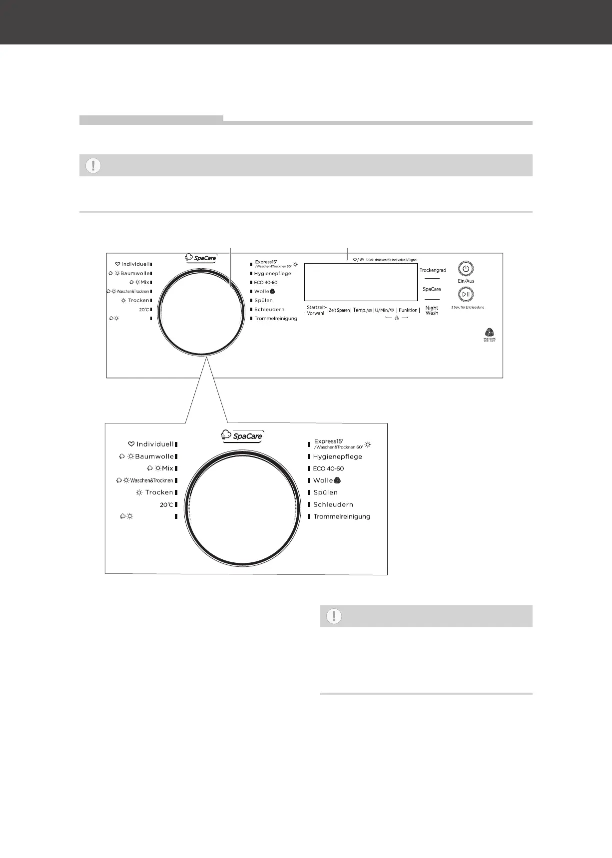 Wählen Sie das Programm immer vor dem Beladen des Waschtrockners. Andernfalls