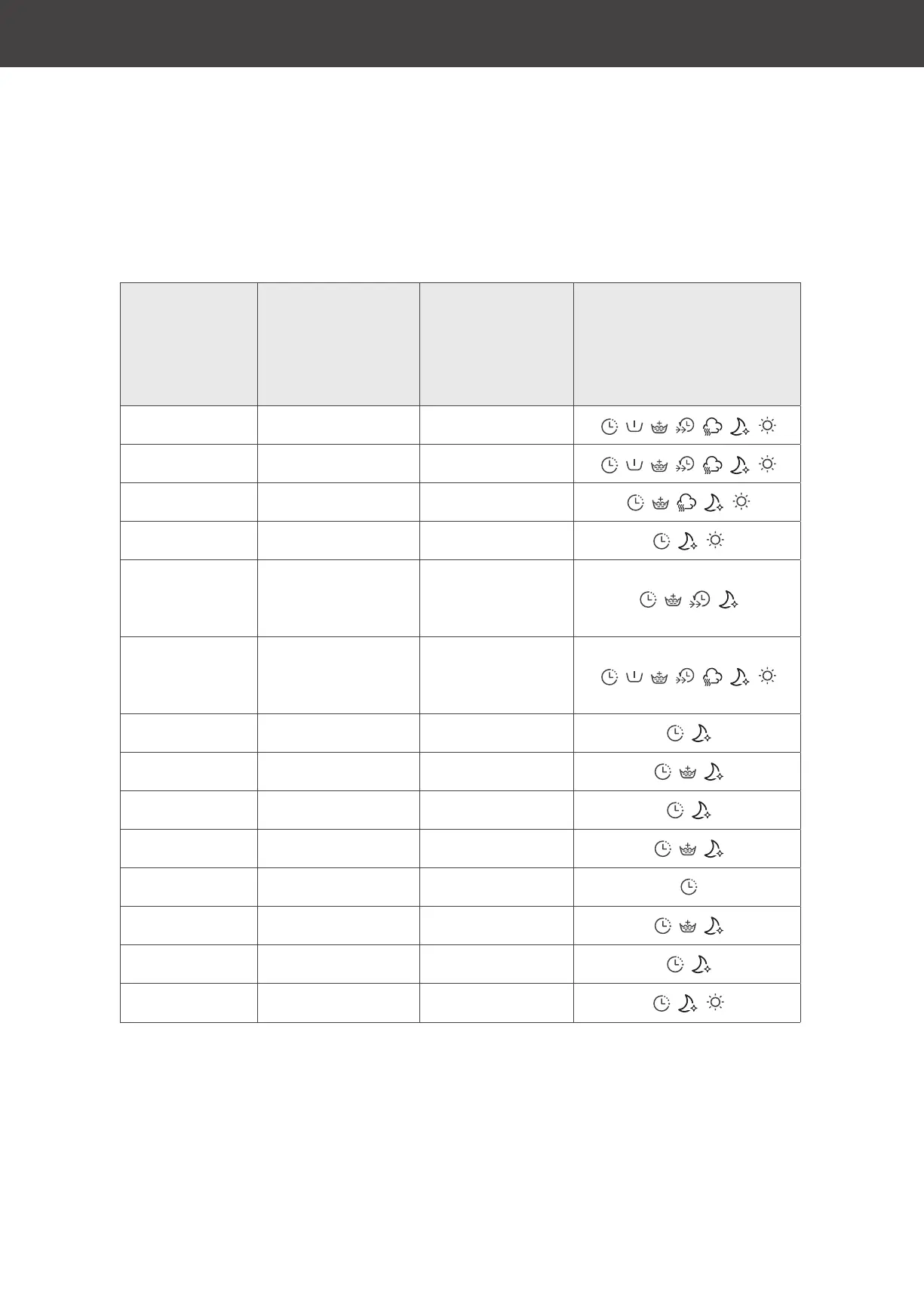 The table shows which cycle offers which options for adjustment. If an adjustment is not possible