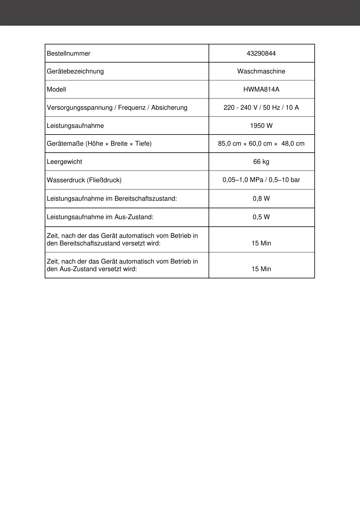 Das Produktdatenblatt zu Ihrem Gerät wird Ihnen online zur Verfügung gestellt.