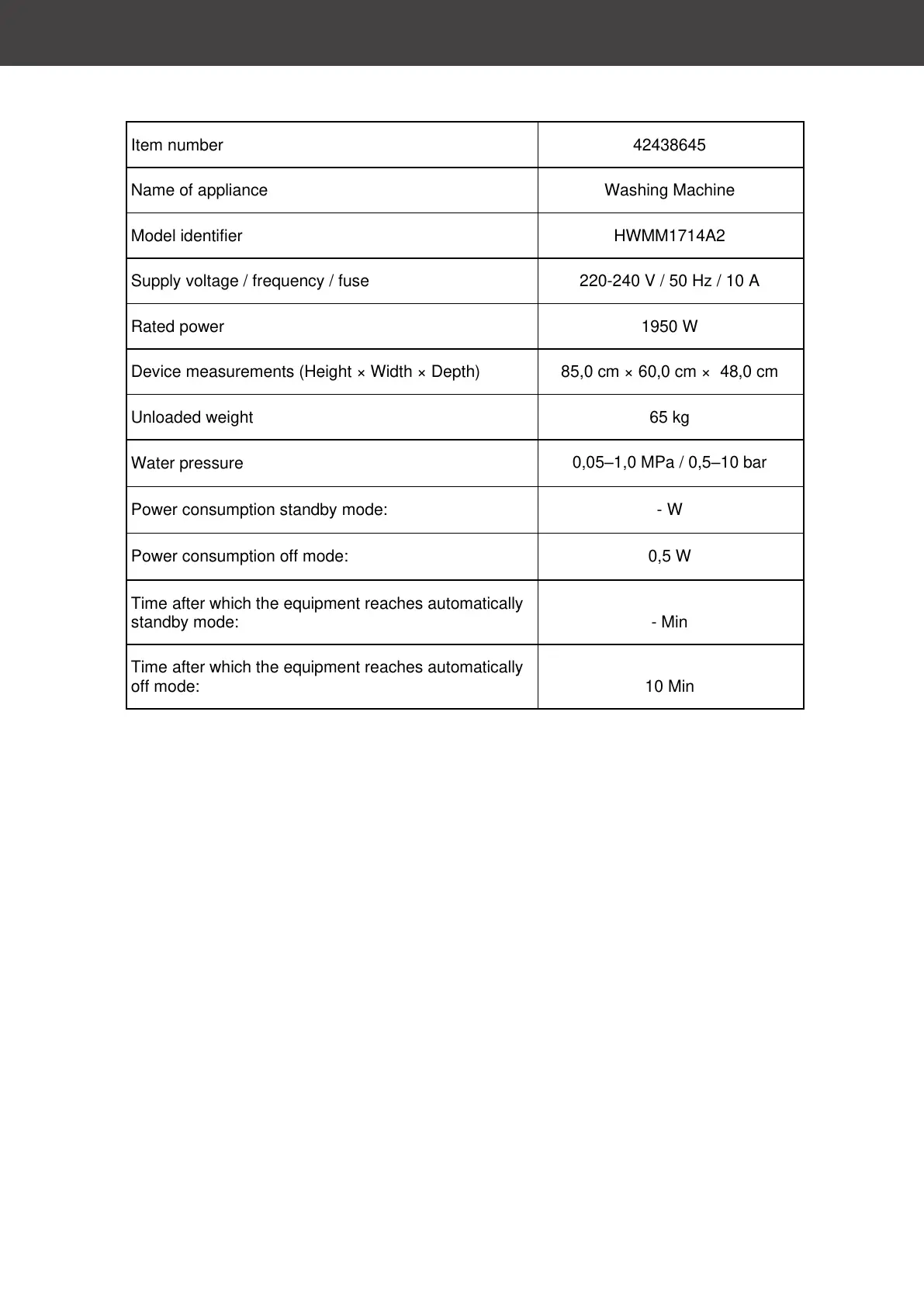 Bekijk gratis de handleiding van Hanseatic HWMM1714A2, stel vragen en lees de antwoorden op veelvoorkomende problemen, of gebruik onze assistent om sneller informatie in de handleiding te vinden of uitleg te krijgen over specifieke functies.