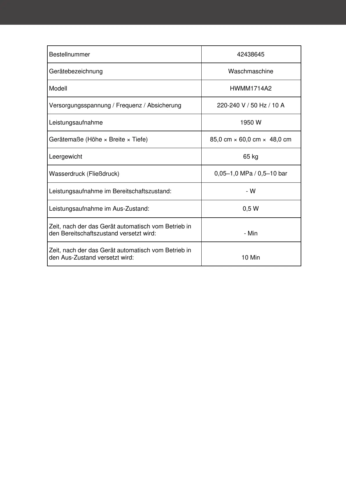 Das Produktdatenblatt zu Ihrem Gerät wird Ihnen online zur Verfügung gestellt.