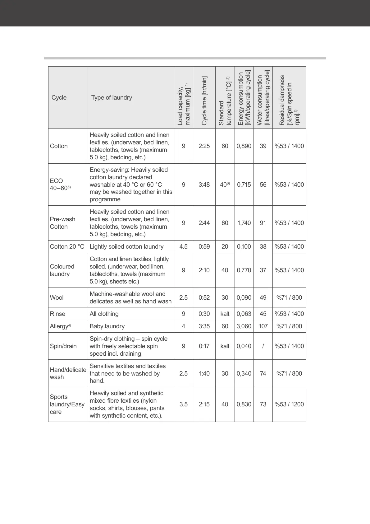 Cotton 20 °C Lightly soiled cotton laundry 4.5 0:59 20 0,100 38 %53 / 1400