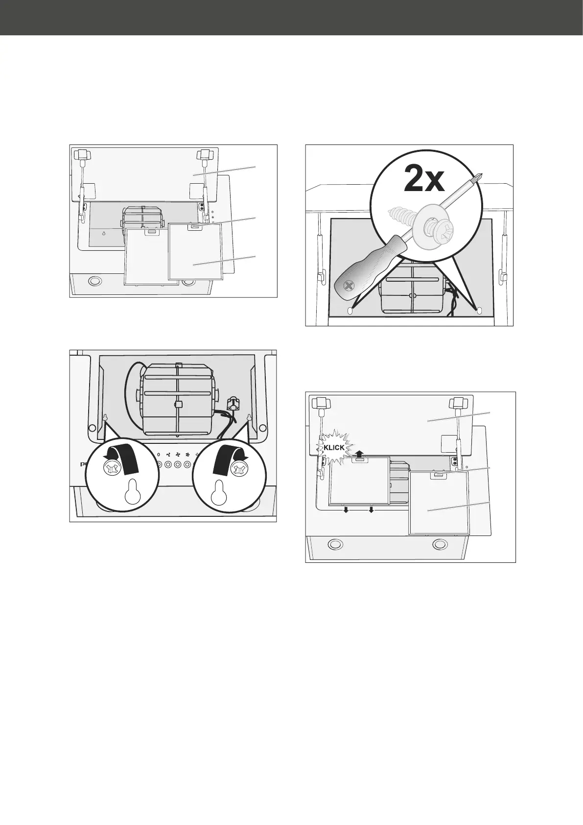 8. Place the grease filters (8) with the pins