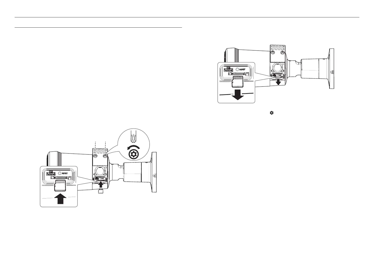 Before installing the camera, the Micro SD card should be inserted while the power source and the body are separated.