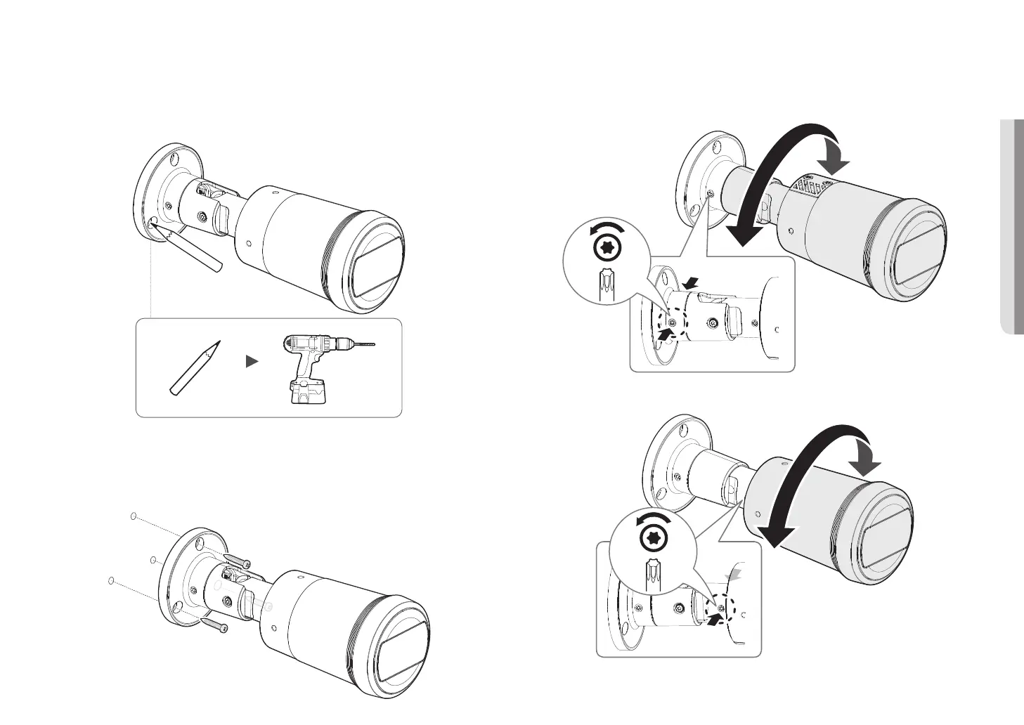 1. Place the camera on the desired location considering the direction to be monitored, mark the locations for
