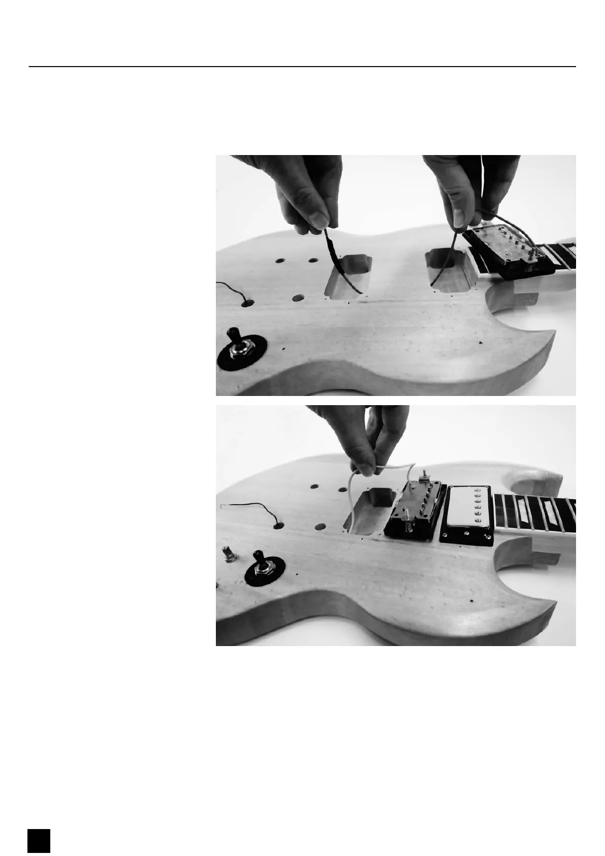 the neck of the guitar. Insert the somewhat taller bridge pickup into the opening