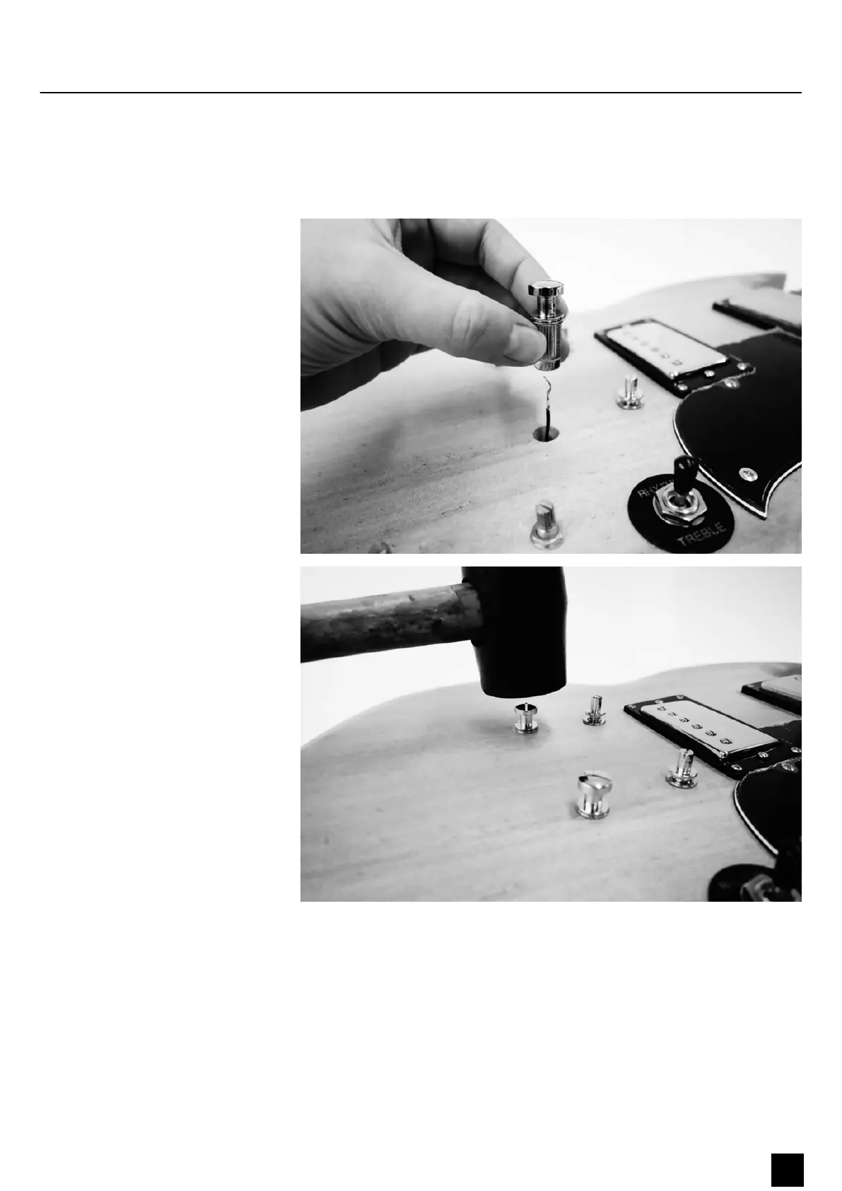 Use a rubber mallet to drive the bolt fasteners for the tailpiece and bridge into the