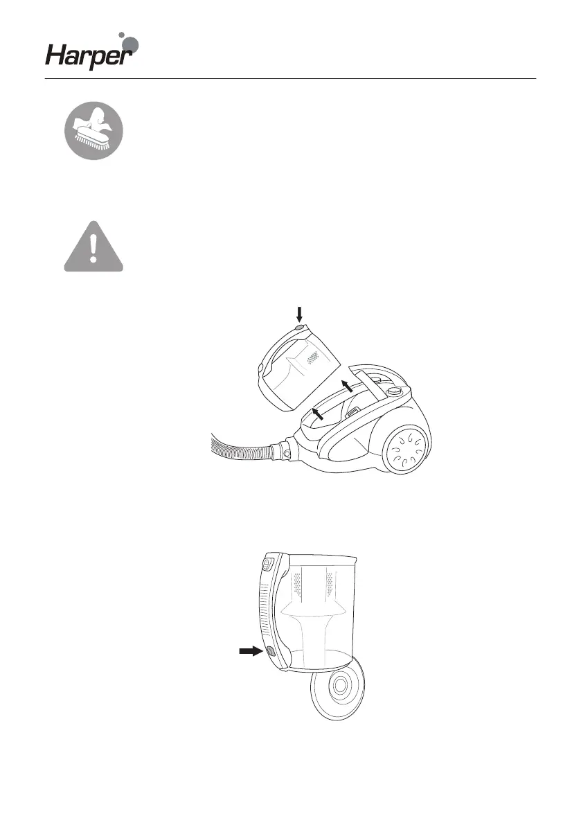 3. Démontez le collecteur de poussière; pour cela, vous enfoncez le bouton de