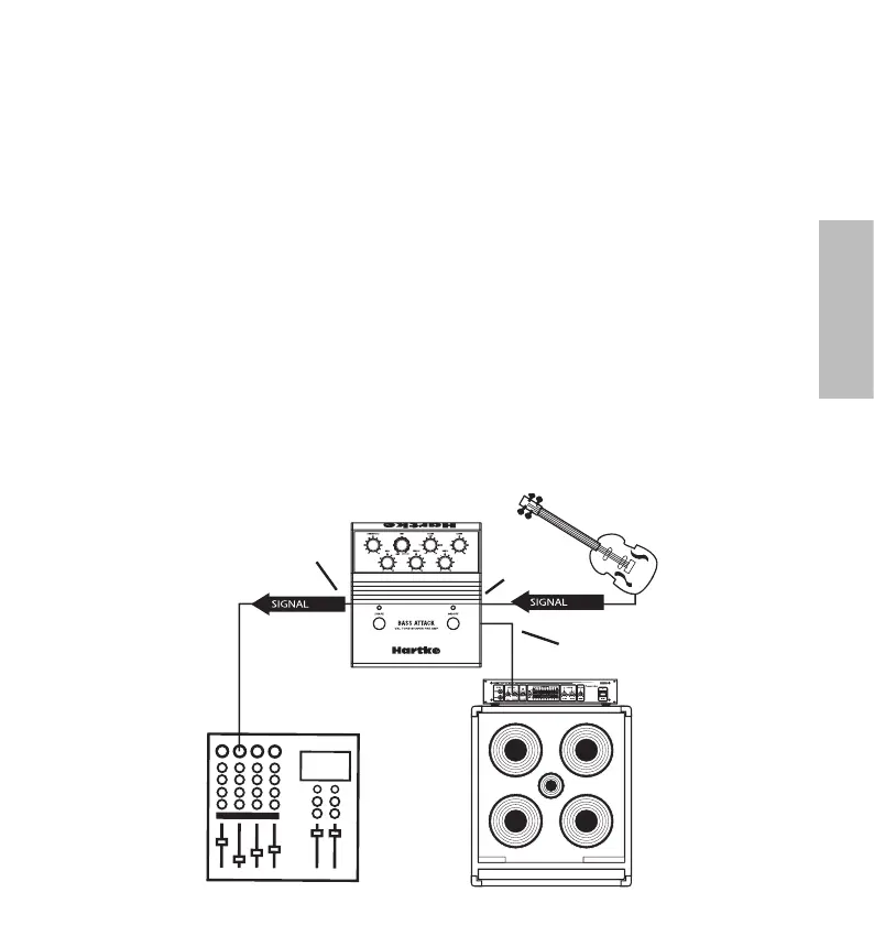 Attack, consiste à connecter la sortie de la basse à la console de sonorisation. Les basses fréquenc-