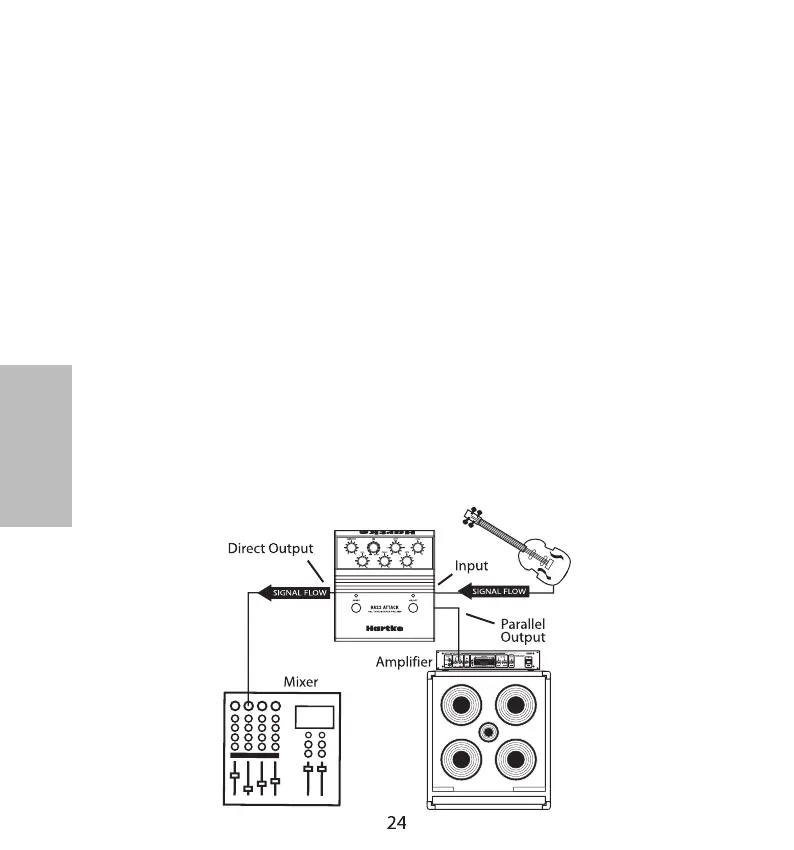 • Verbinden Sie den PARALLEL OUTPUT des Bass Attack mit dem Eingang des Gitarren- oder