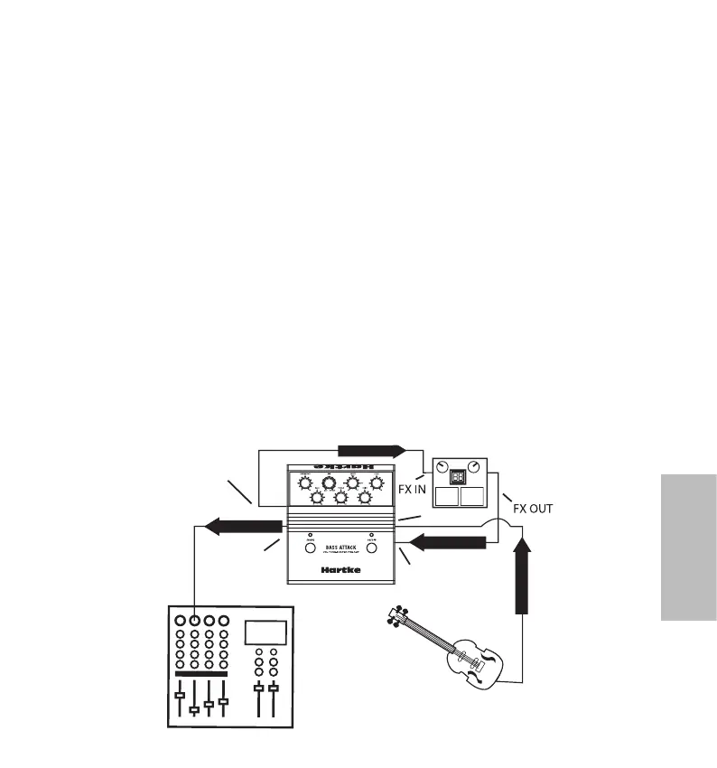 • Conecte la SALIDA EN PARALELO del Bass Attack a la entrada del amplificador de bajo o gui-