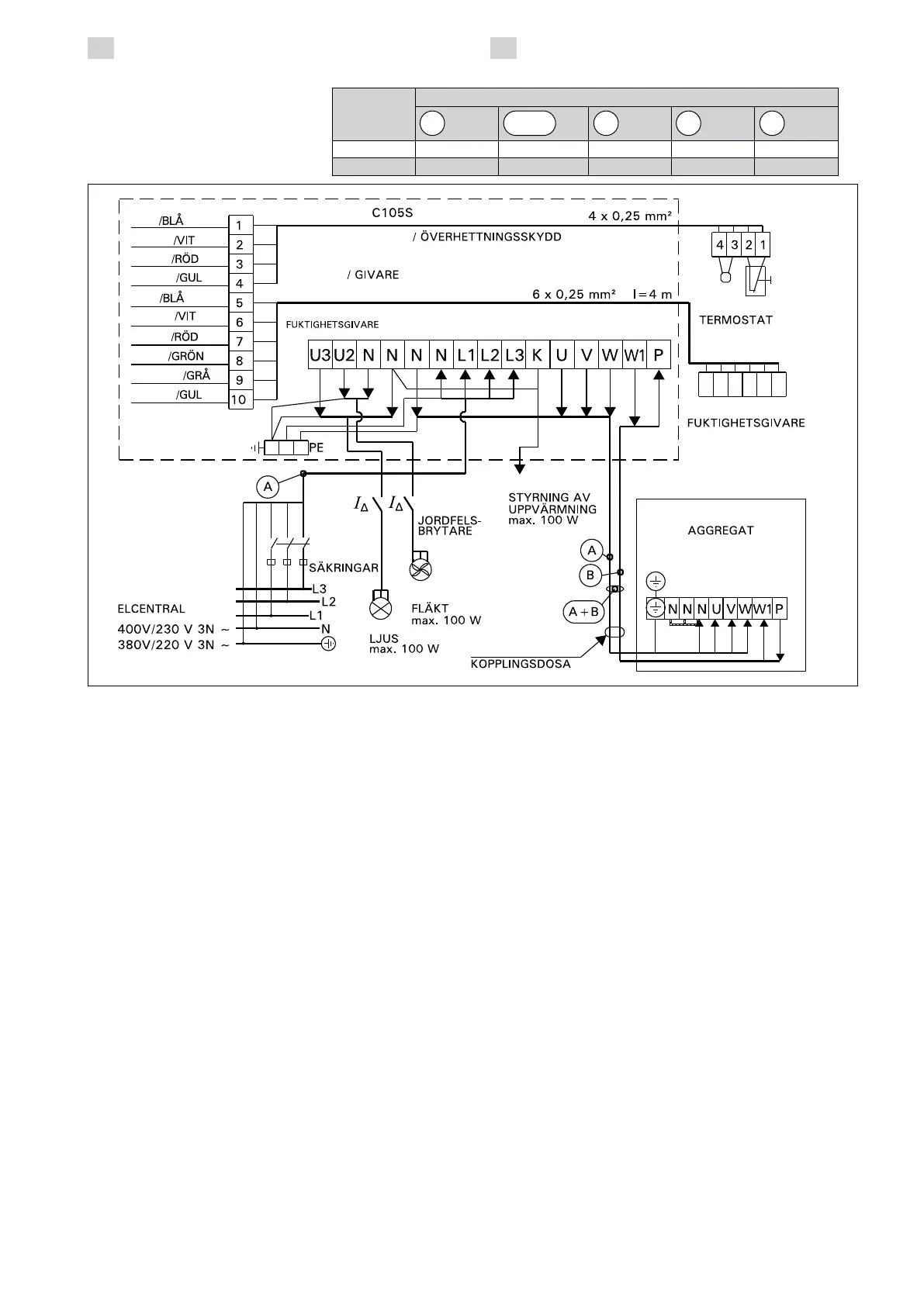 Bild 10. 3-fas elinstallationer av styrenhet C105S och BQ-S-aggregat