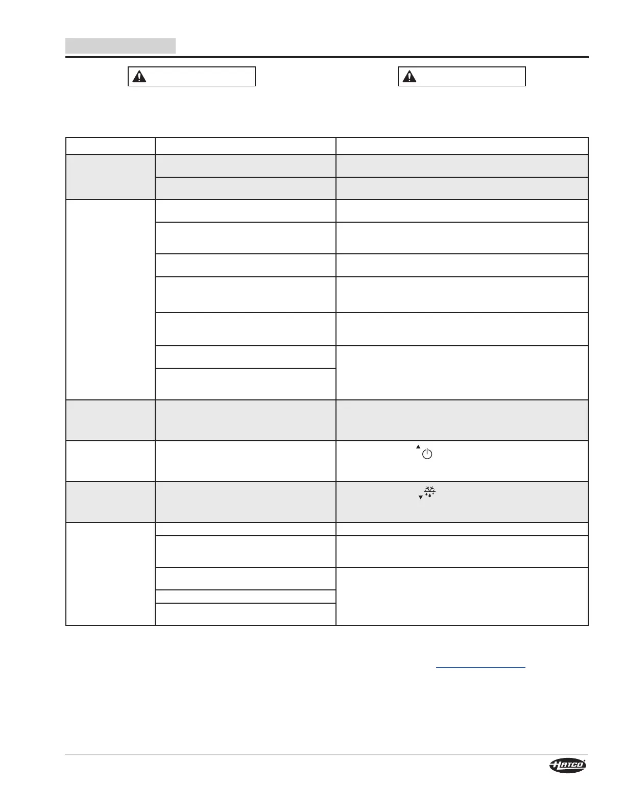 Si le problème persiste, veuillez contacter l’agence d’entretien agréée Hatco la plus proche ou Hatco pour obtenir une assistance.