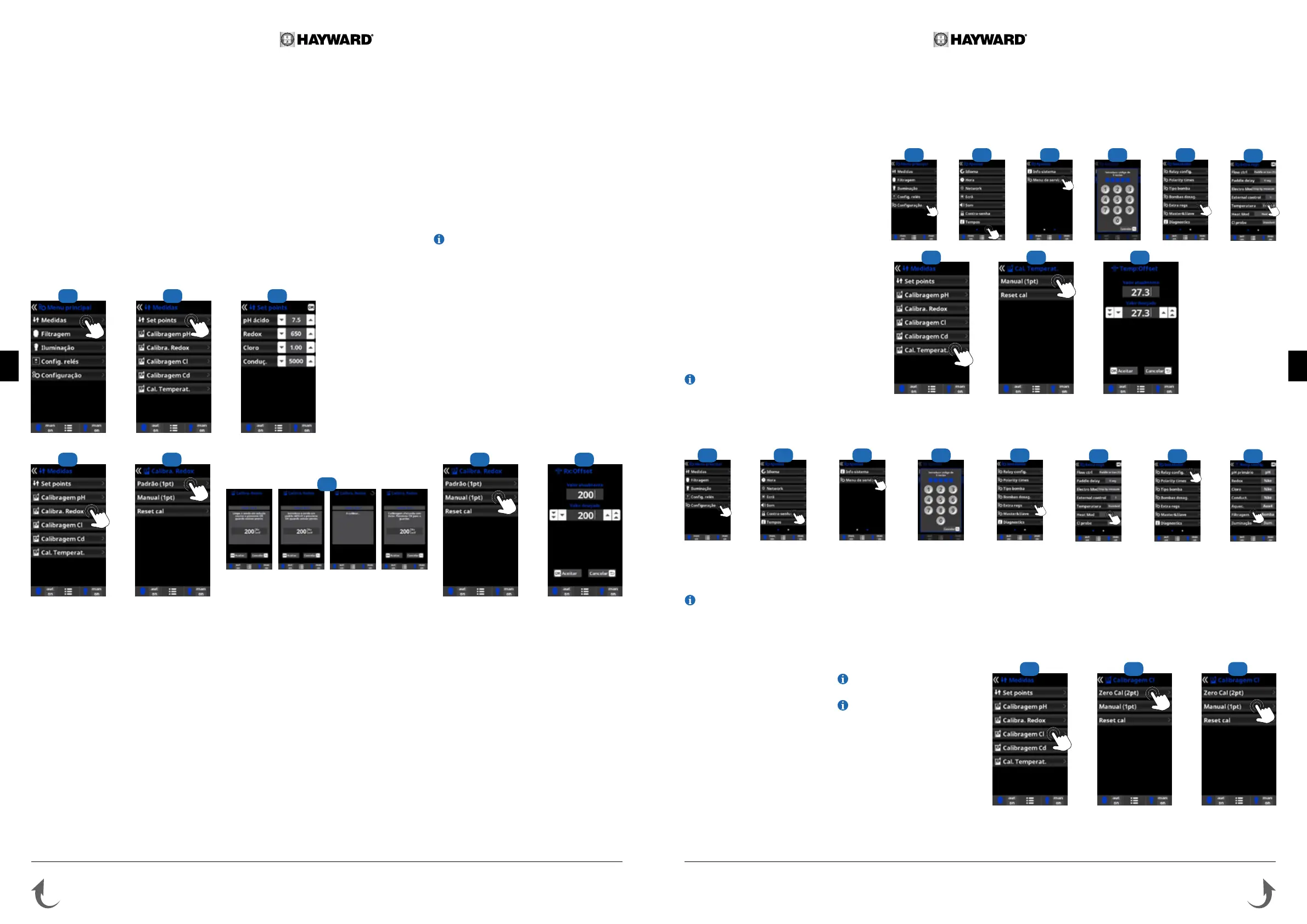 • A Hayward recomenda calibrar a sonda de cloro livre com um elevado teor de cloro: entre 1 ppm e 1,2 ppm.