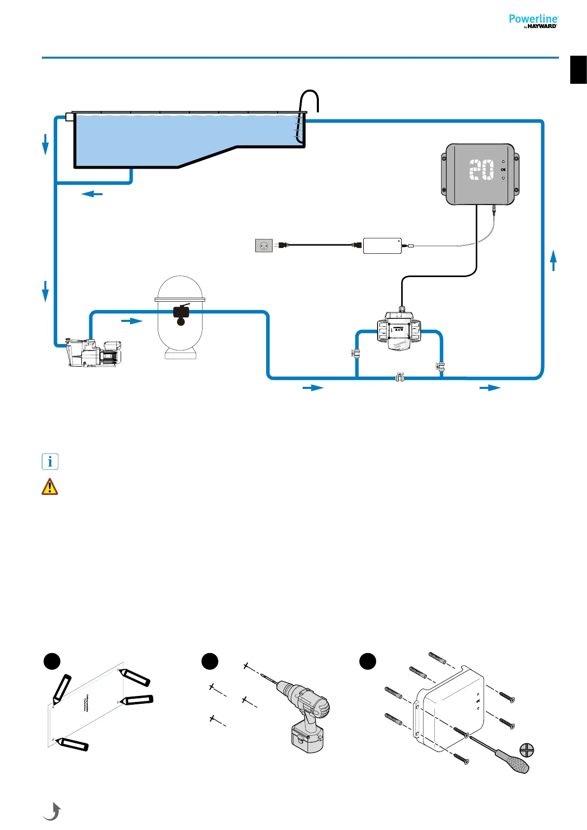 Unplug the pool filter pump before you begin the installation. The installation must be performed in compliance with the