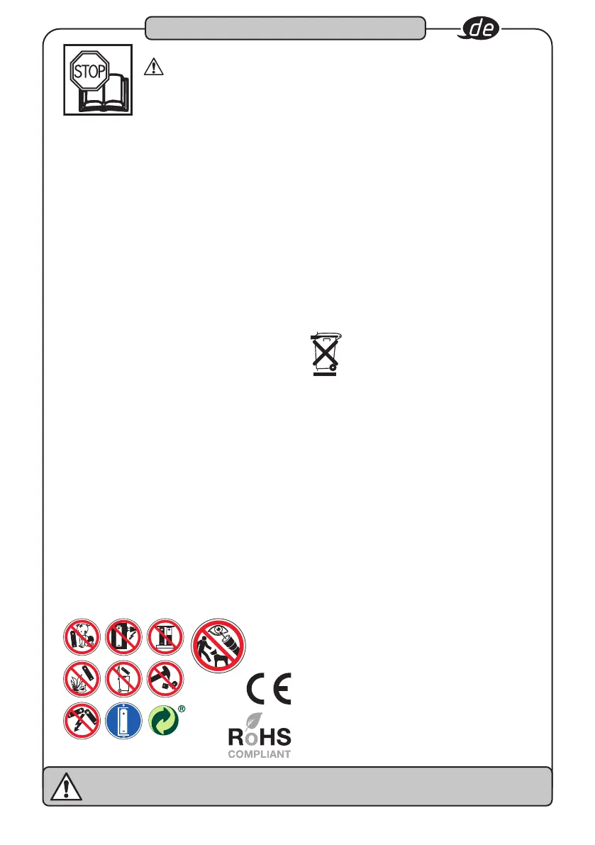 • Schutzvorrichtungen dürfen nicht entfernt werden.