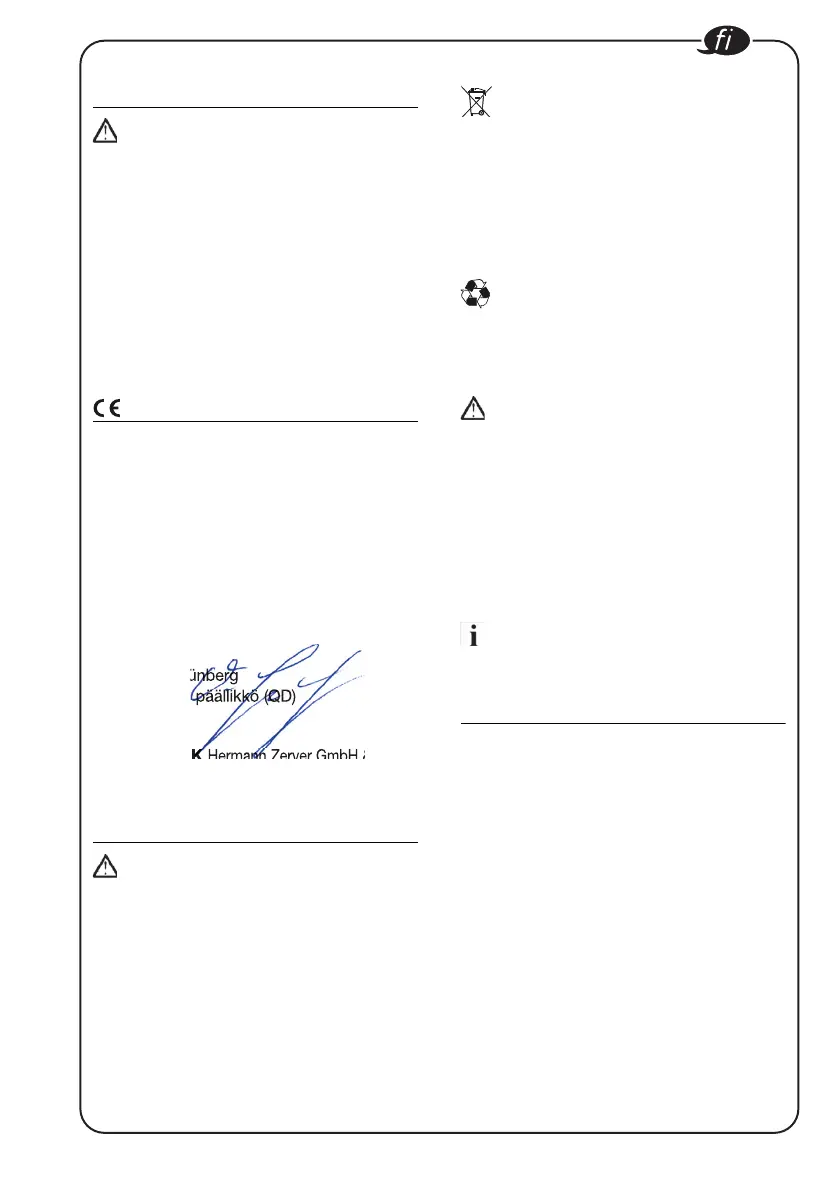 ennen kaikkia huoltotöitä. Älä käytä vettä