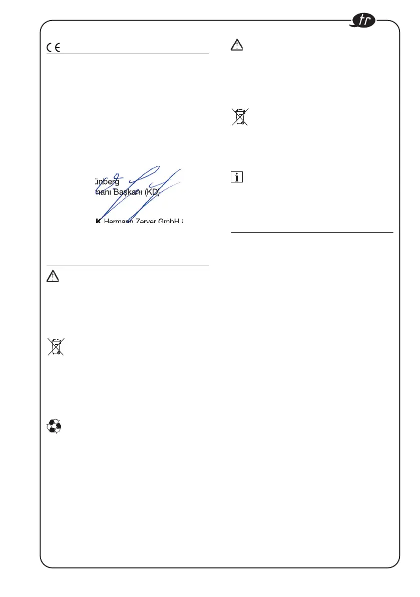cihazlar ayrı toplanmalı ve çevreye zarar