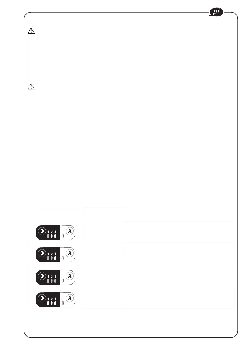 “A” e os indicadores LED para os modos de