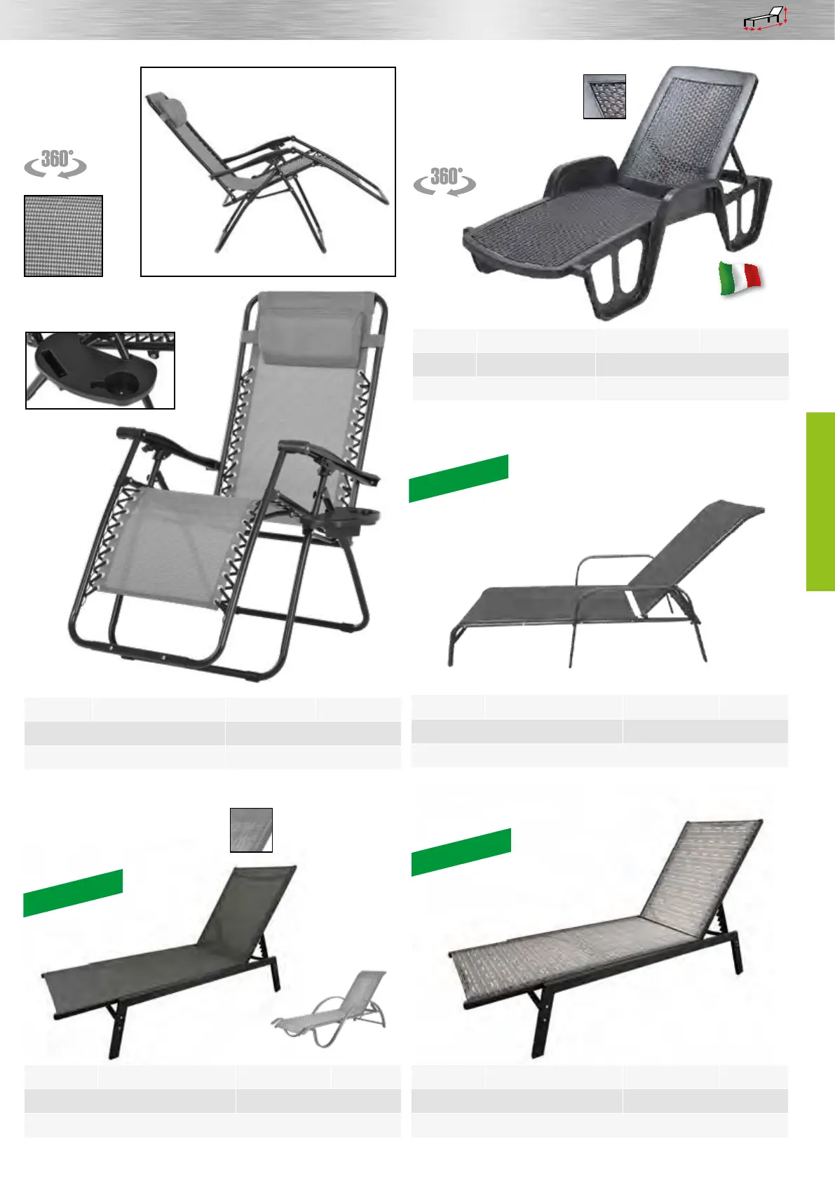 Luxurious adjustable lounger made of steel and aluminum profiles.