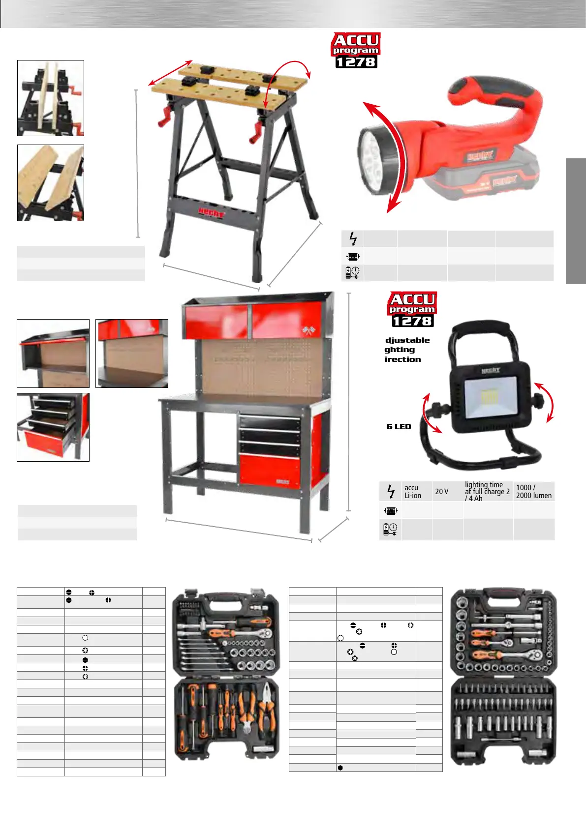 TOOL SETS, WORK TABLES, LED LIGHTS
