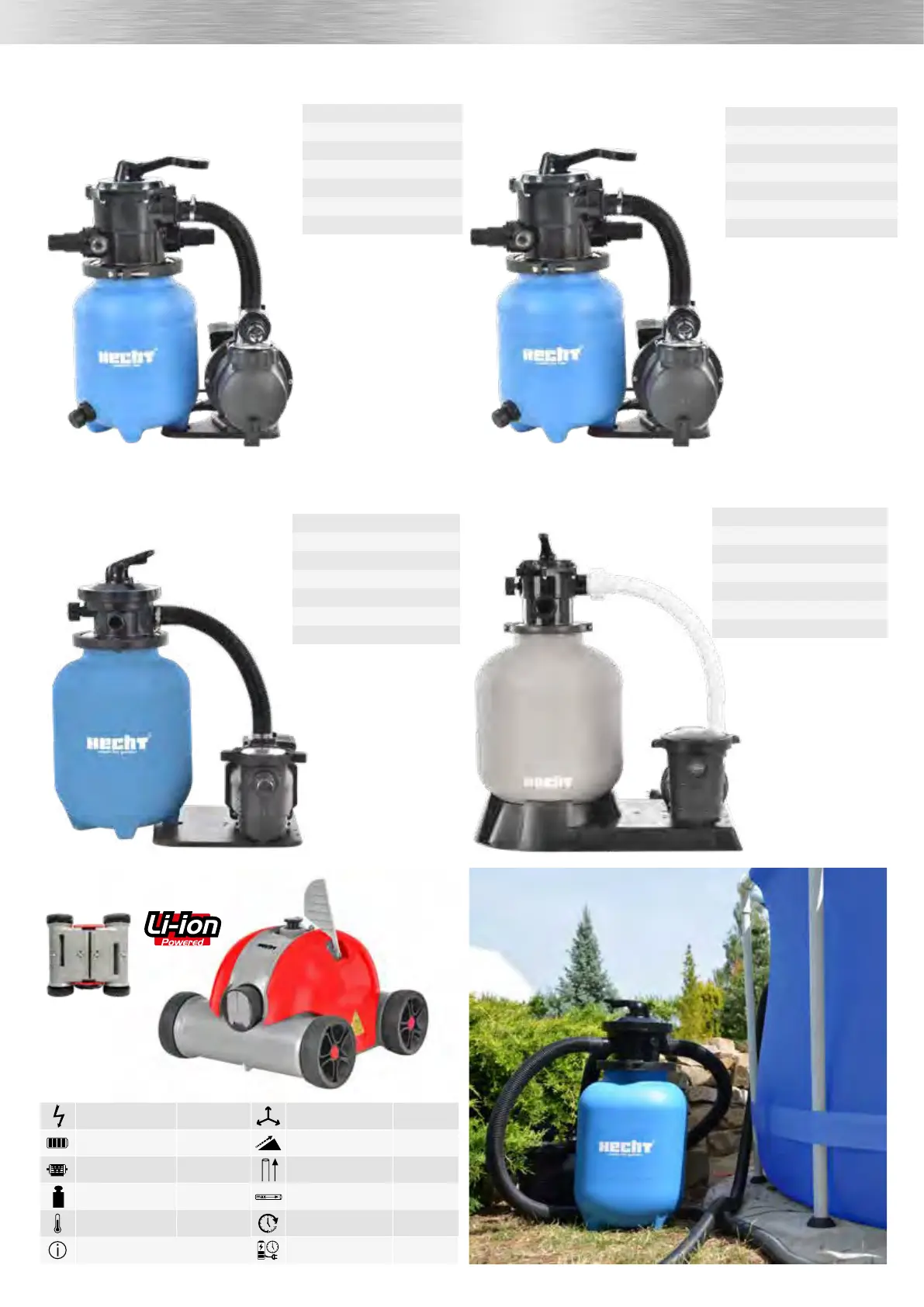 the daily time of operation of the filtration, etc. More info at www.hecht.cz in the Pools and accessories section