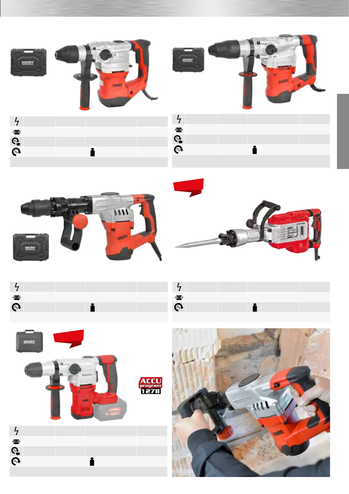 SDS-HEX mounting, additional handle, 1× pointed chisel, 1× flat chisel,