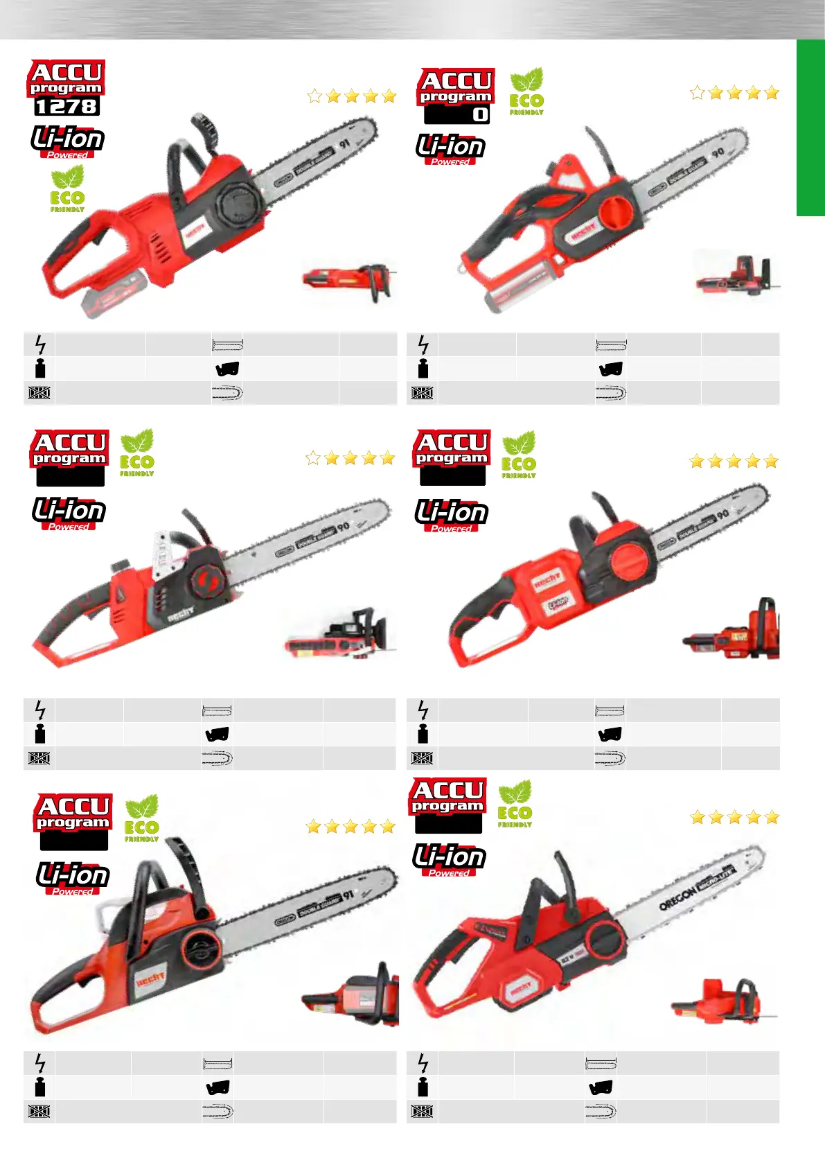 * Net weight of chainsaws is without guide bar and saw chain. ** Maximum working time without load with 2 Ah battery.