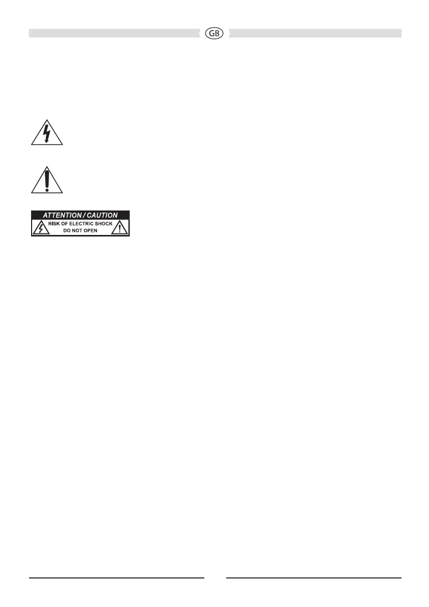 to water or high levels of humidity. There is a danger of electric shock. In the event of contact with