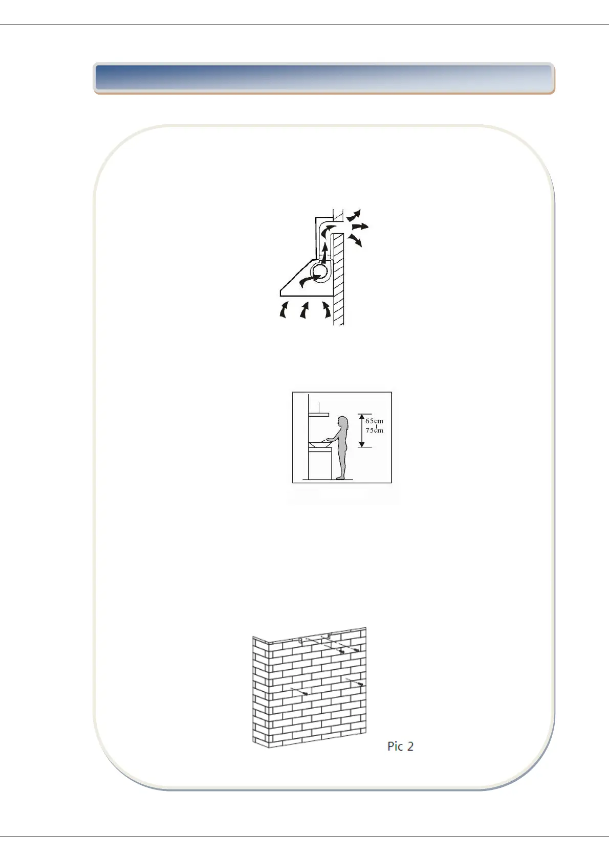 2. A szagelszívót az optimális működés érdekében 65~75 cm-es távolságra kell a