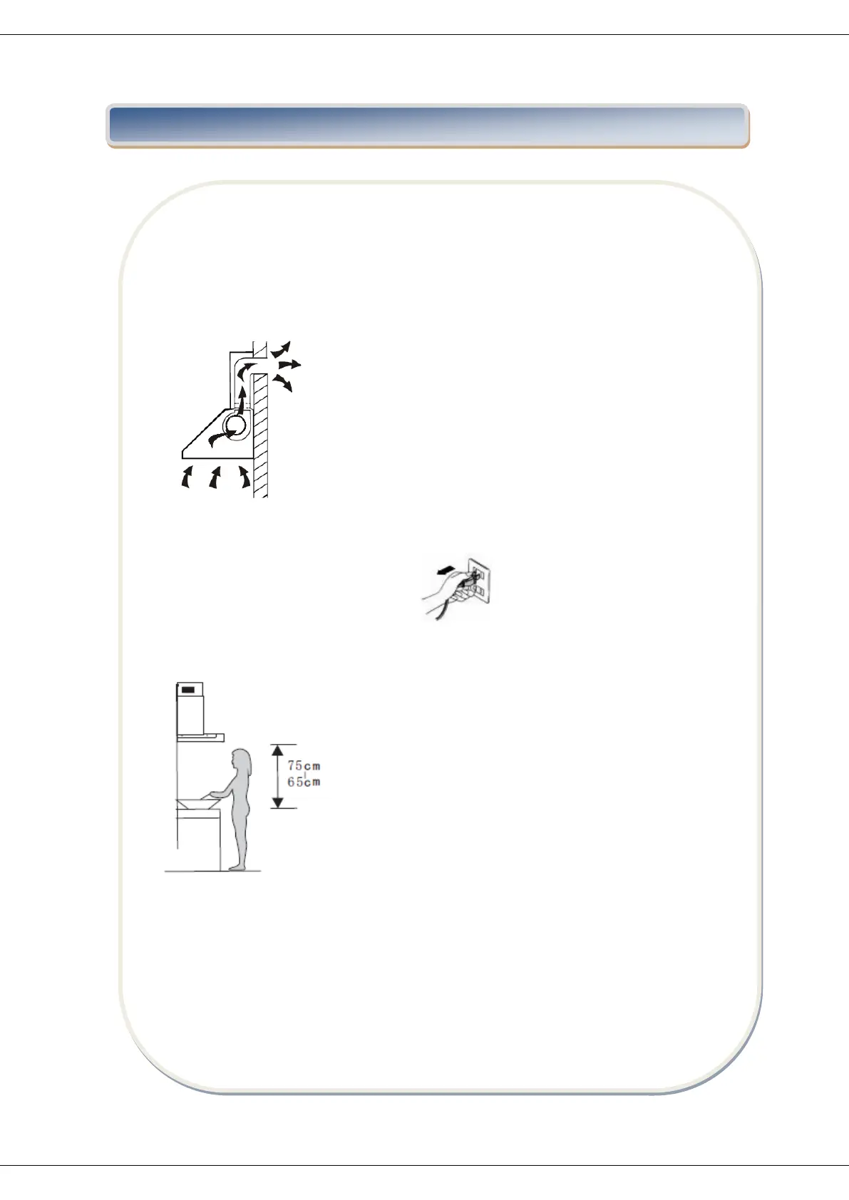 2. A legkedvezőbb üzemeltetés érdekében a szagelszívót szerelje 65-75 cm-rel a tűzhely
