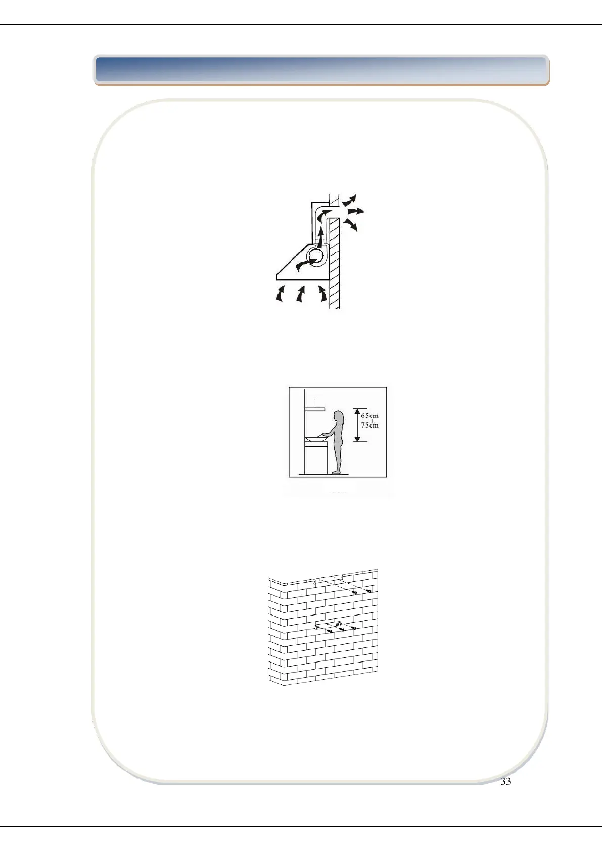 2. A szagelszívót az optimális működés érdekében 65~75 cm-es távolságra kell a
