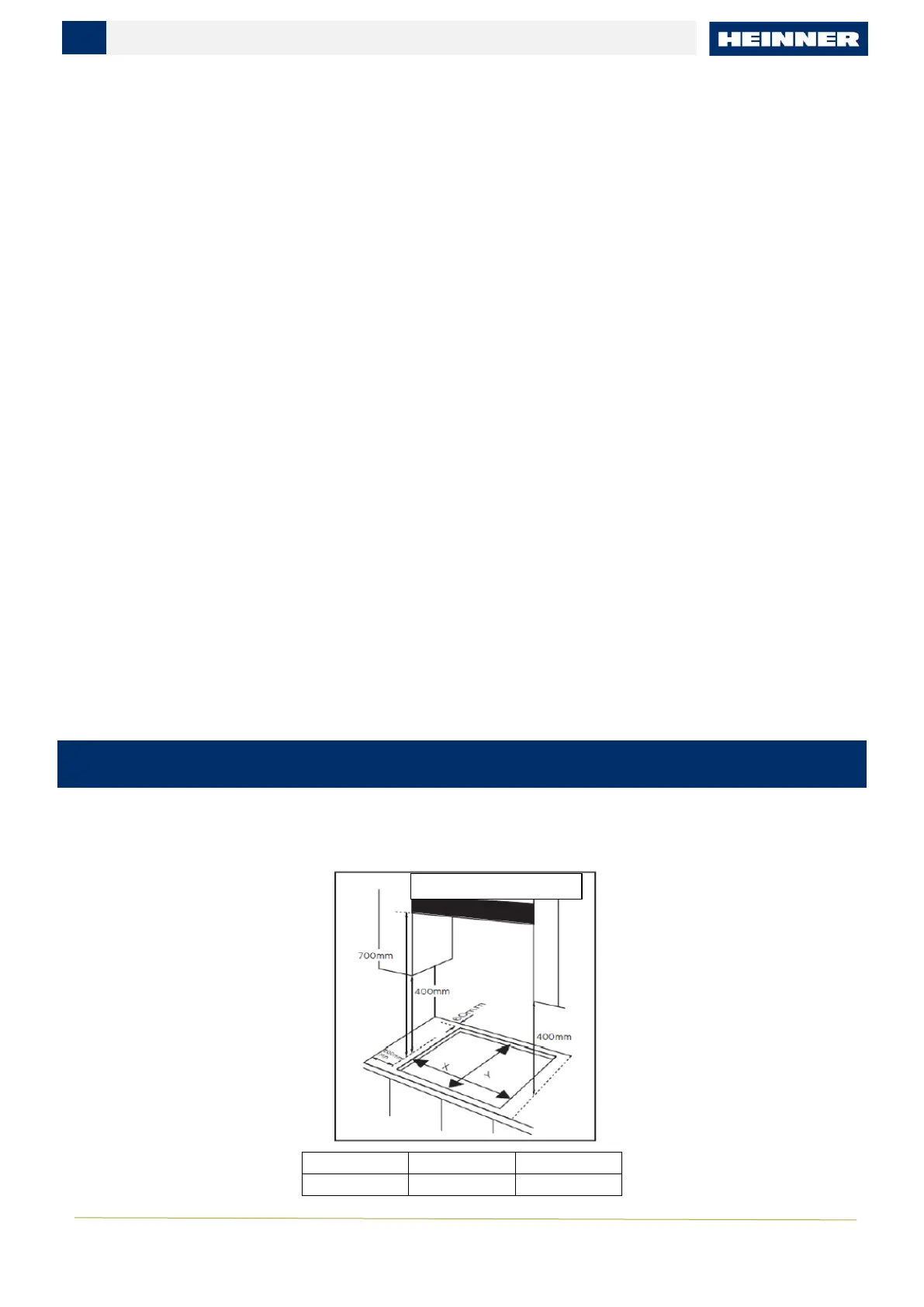 Distanțe necesare atunci când plita se montează cu o hotă deasupra: