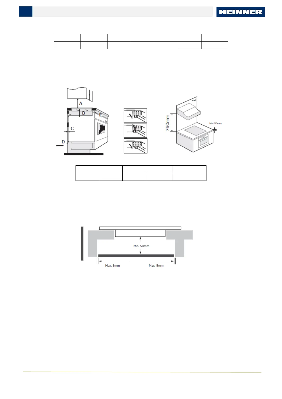 • The rear wall, adjacent and surrounding surfaces must therefore be able to withstand an temperature of