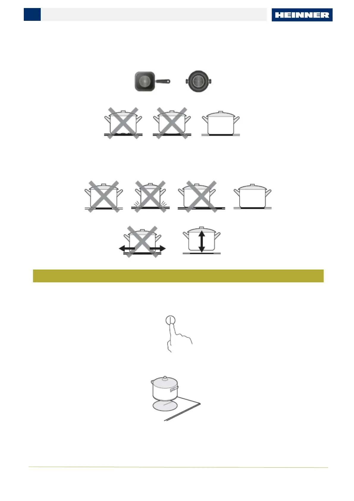 • Make sure the bottom of the pan and the surface of the cooking zone are clean and dry.