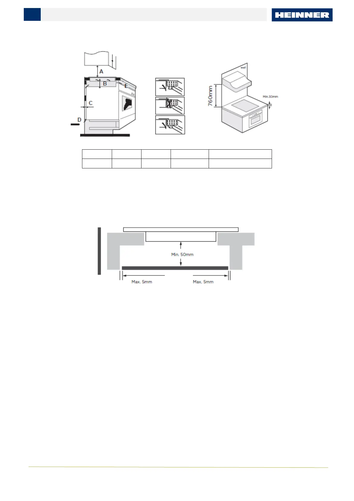 a főzőlap alsó felületétől legalább 50 mm távolságra. Tartsa be az alábbi követelményeket: