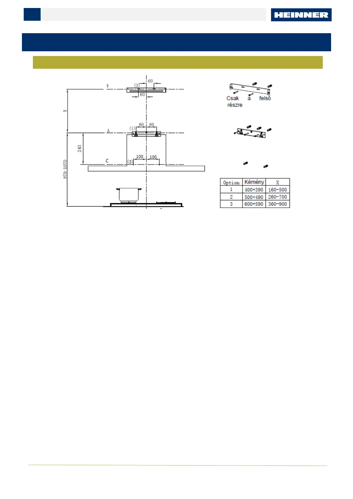 Egy vízszintes A vonalat a tűzhely fölött 970–1070 mm magasságban.