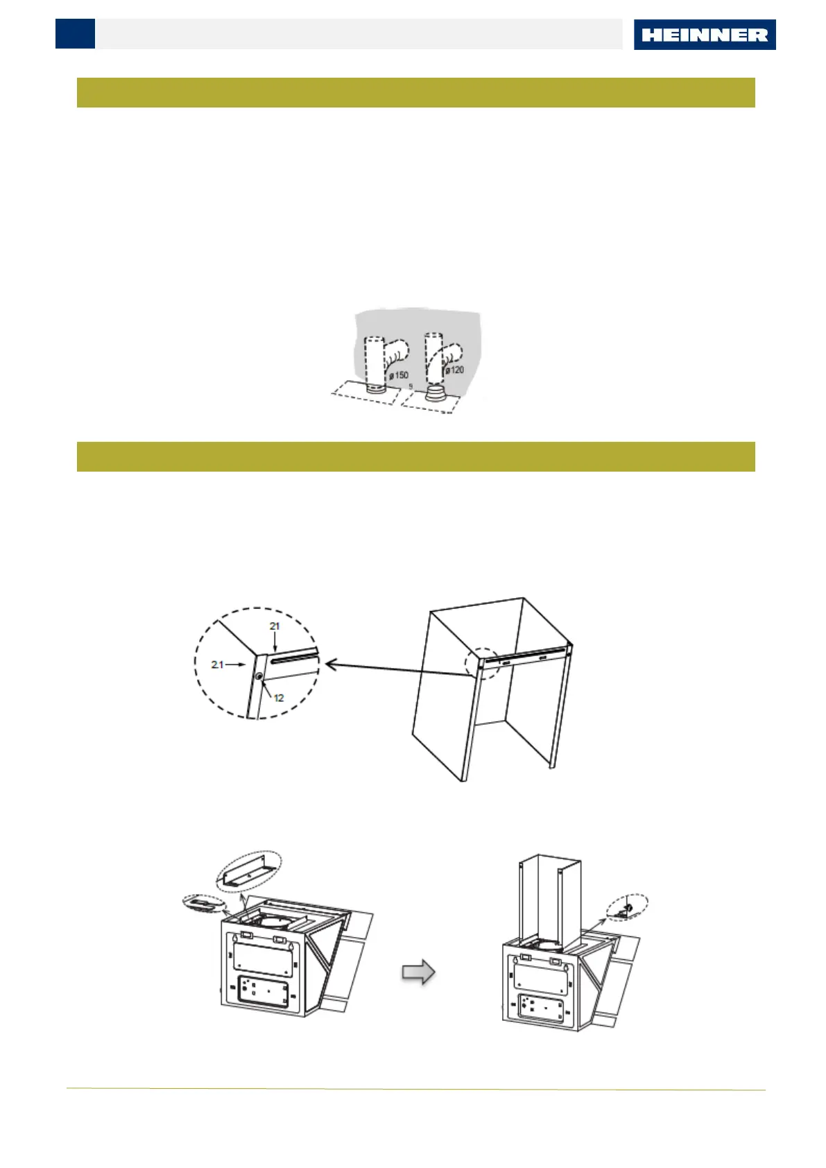 Фиксирайте долната част на комина към опори 21 с 2 винта 12 (4,2 x 9,5), които ще получите в пакета с