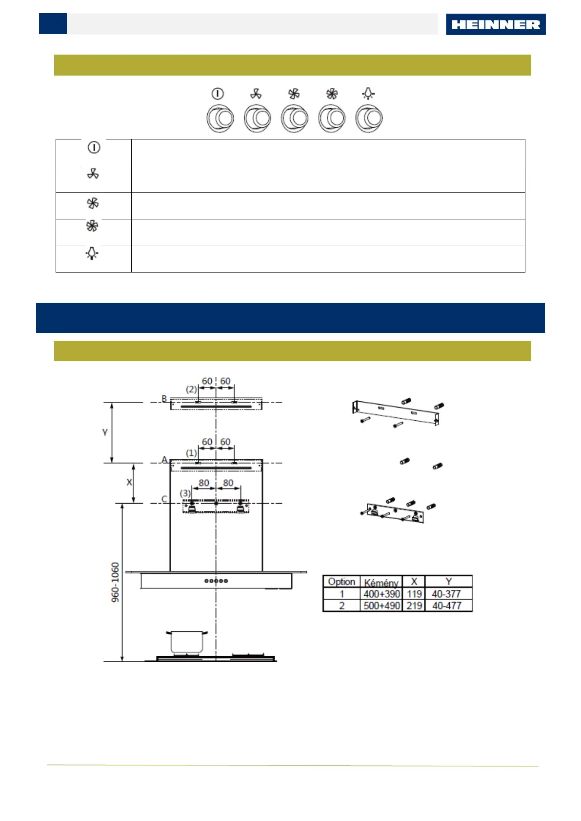 Egy vízszintes C vonalat a tűzhely fölött 960–1060 mm magasságban.