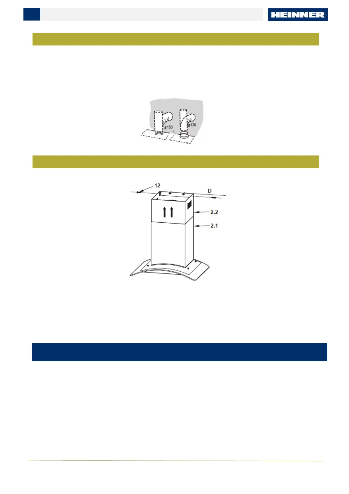 When installing the ducted version, connect the hood to the chimney using either a flexible or rigid pipe ɸ