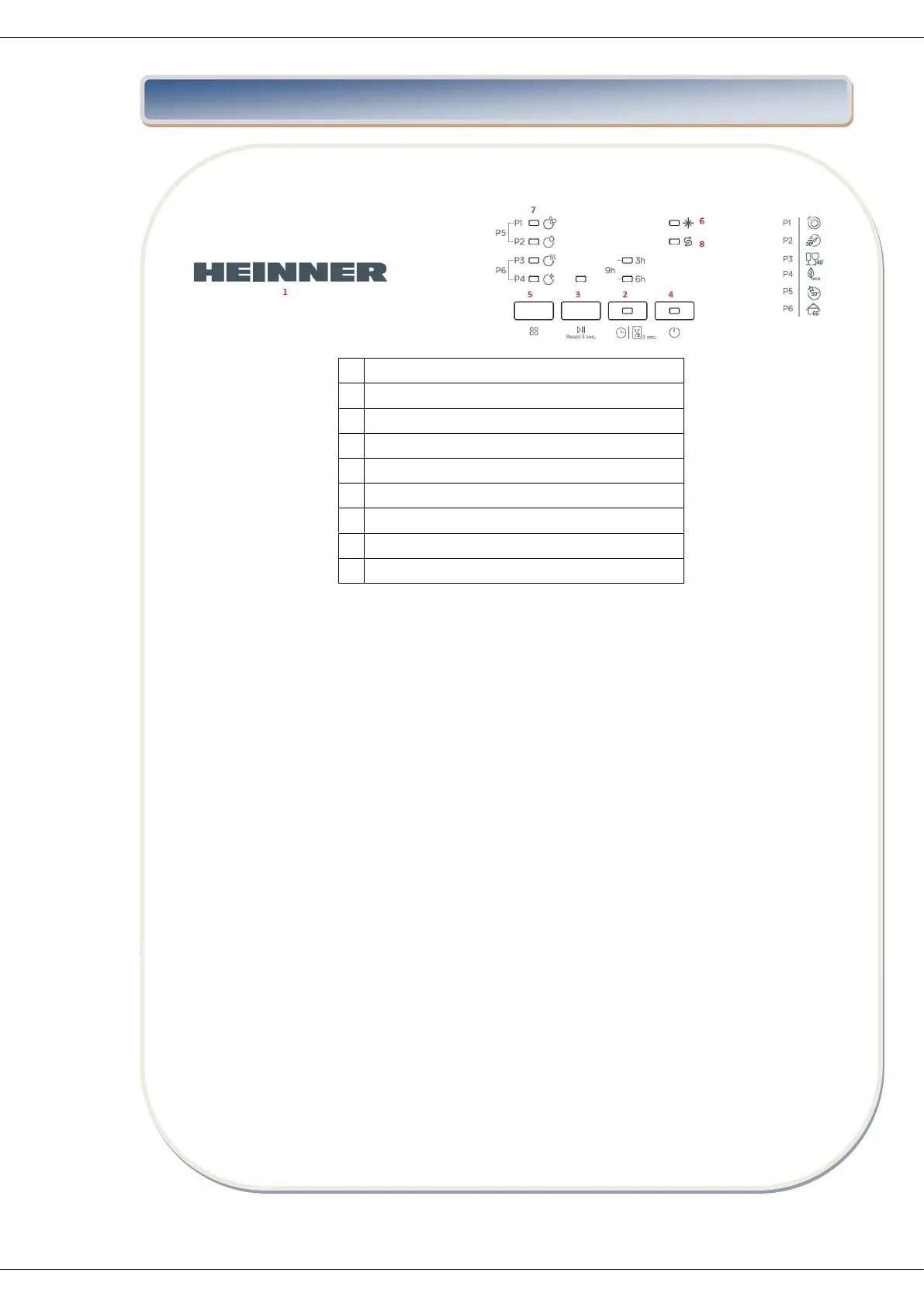 Program flow can be monitored via Wash, Rinse Dry and End lamps (7) on control panel.