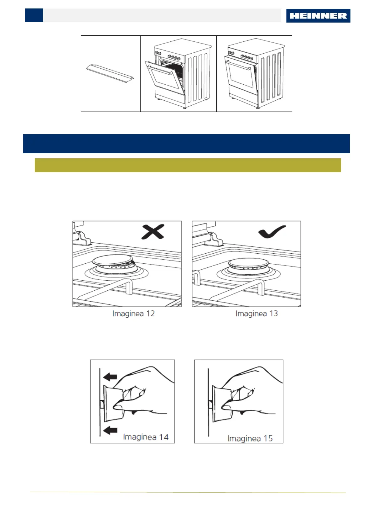 poziționate corespunzător. Poziționarea corectă a capacelor arzătoarelor cu gaz este prezentată în figura de