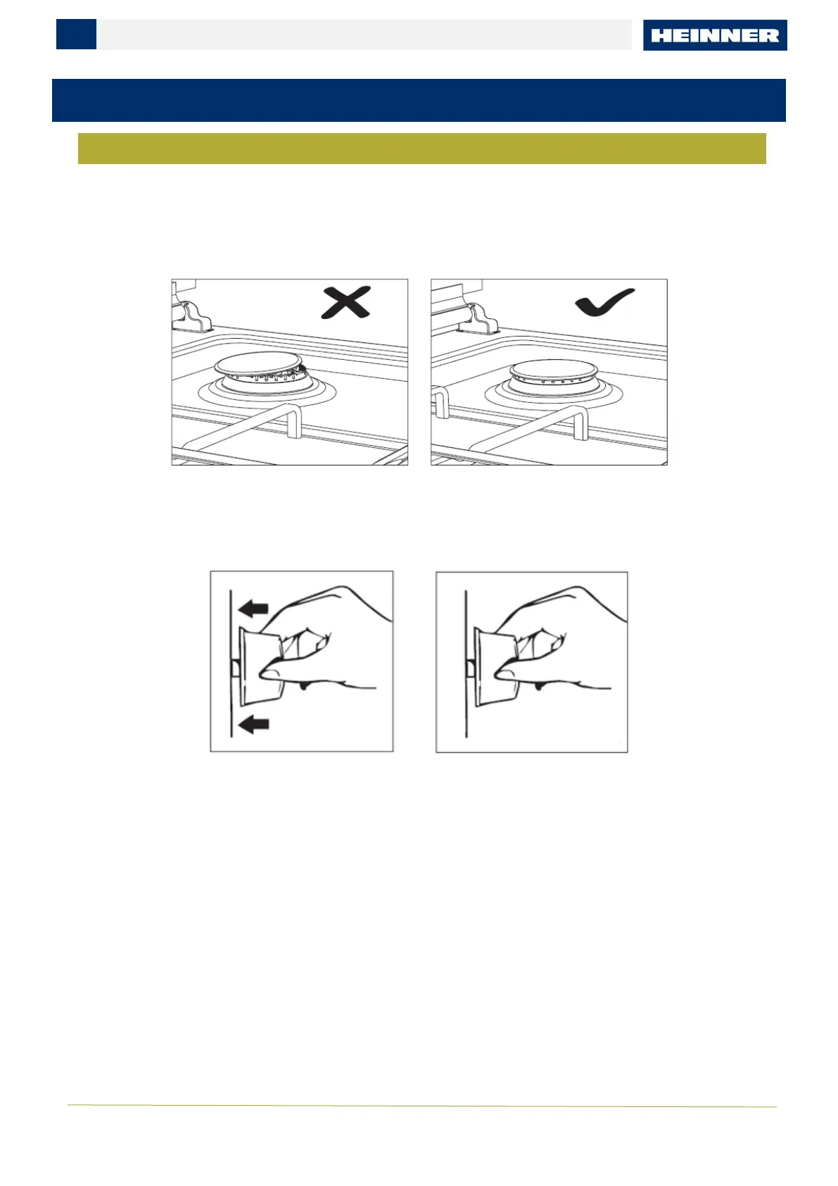 същите са правилно поставени. Правилното позициониране на капачките на газовите котлони е