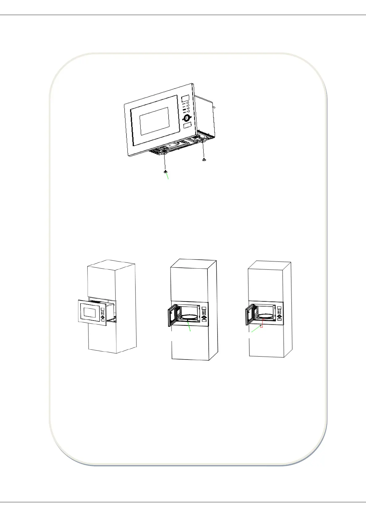 d) Introduceți produsul în spațiul din dulap destinat montării acestuia, până în punctul