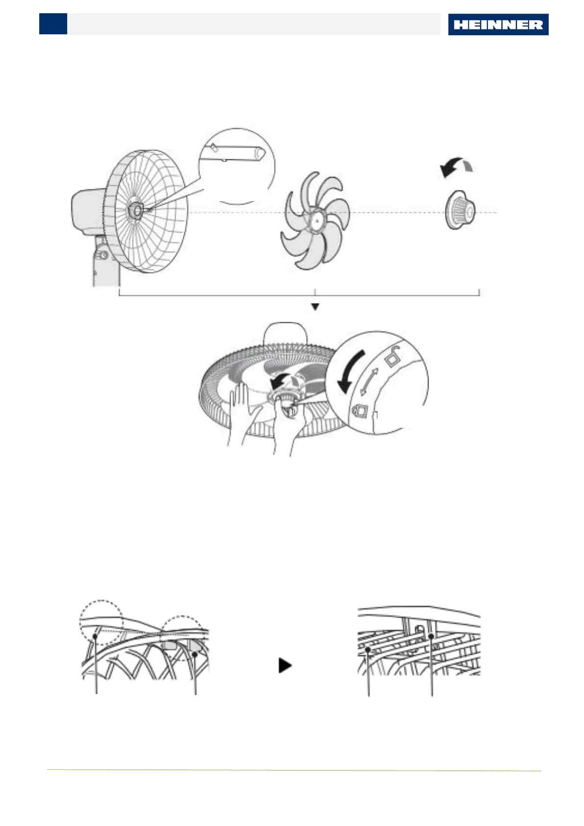 5.1. Fentről lefelé igazítsa az elülső védőrács kapcsait a hátsó védőrács felső részén
