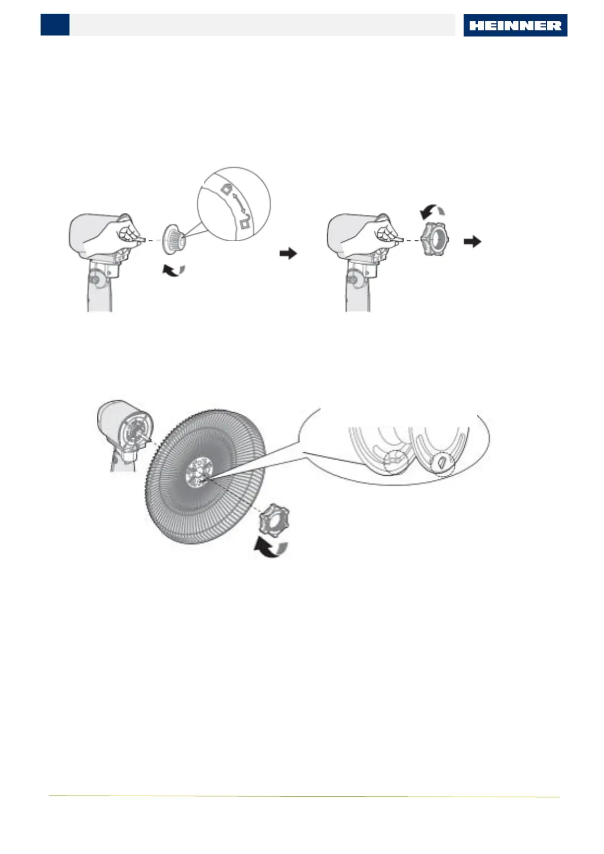 3.2. Hang the rear grille on the motor; rotate the grille lock nut clockwise to lock the rear