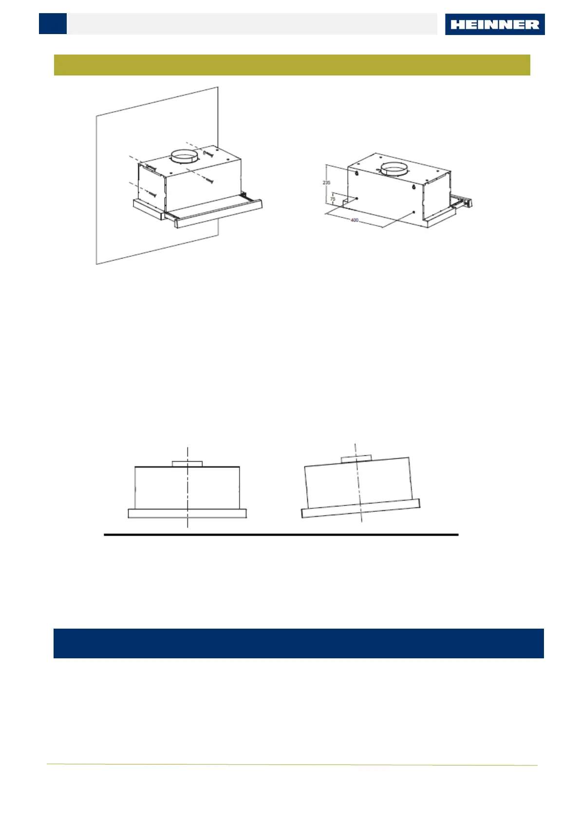 • Dacă suprafața de instalare din dulap nu este adaptată pentru instalarea hotei, fixați hota pe perete.