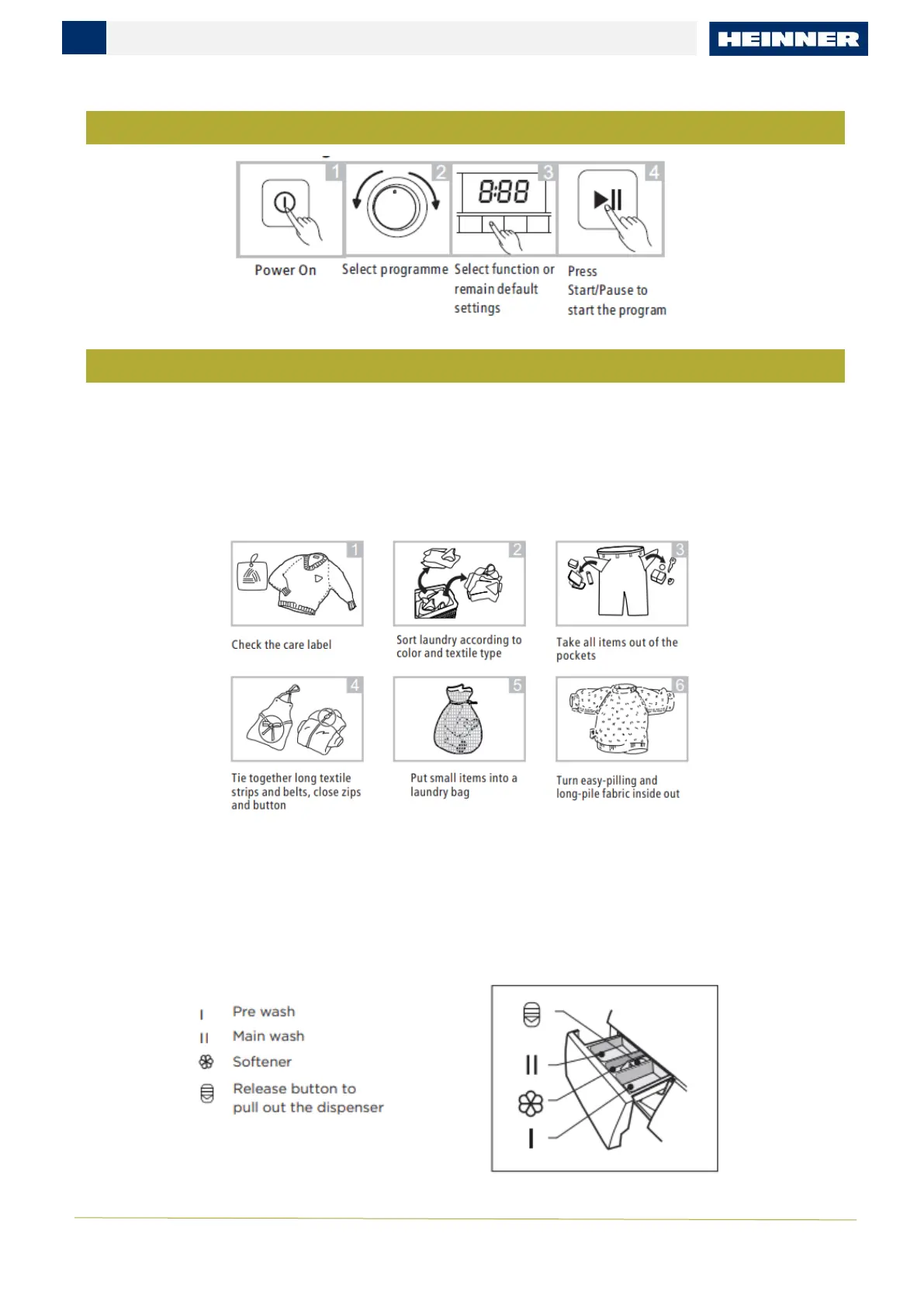 • Please check your laundry care labels and the detergent use instructions before washing. Use non-