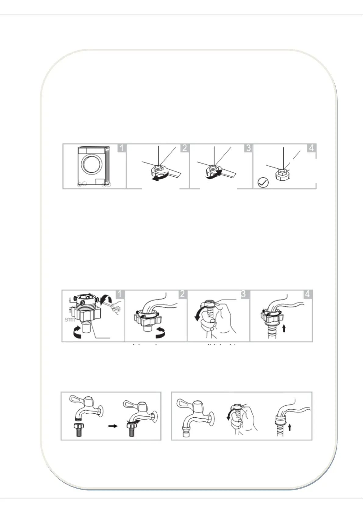 2. Racordarea furtunului de admisie la un robinet cu filet.